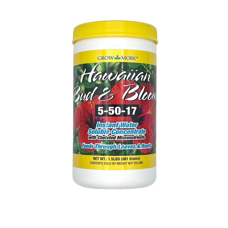 Grow More Urea-Free Hawaiian Bud and Bloom 5-50-17 Fertilizer - 1.5lbs of Water Soluble Bloom Booster Fertilizer for Flowers - High Phosphorus Flower Food for Enhanced Bud Formation & Vigorous Blooms
