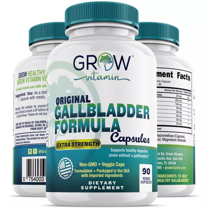 The Original Gallbladder Formula is a dietary supplement from Grow Vitamin that provides optimal support for healthy gallbladder function. This is an all-natural product that also provides improved fat digestion. There are several benefits of using The Original Gallbladder Formula which include: Supports fat utilization Helps promote liver and gallbladder health Stimulates the production and secretion of bile acids Supports optimal digestion of carbohydrates, proteins, and fats Contains enzymes The Original Gallbladder Formula is a dietary supplement that is ideal for individuals who are searching for a way to support the health of their gallbladder. The main reason these gallbladder supplements are able to work so effectively and produce such great results is due to the bile salt that assist in emulsifying the fats that are needed for the digestion process. By using The Original Gallbladder Formula, you will be providing your body with the nutrients it needs to maintain healthy overall digestion. Why It's Unique: Bile from the gallbladder acts as the detergent to help break down fats into fat-soluble nutrients like vitamins A, D, E and K.These vitamin deficiencies can then lead to other issues like difficultly seeing in the dark, sinus congestion, right shoulder pain, headaches, low vitamin D levels, bruising, dental cavities and the feeling that you are not satisfied after eating a meal.Gallbladder-targeted nutrients can help break down the sludge the liver releases to improve fat digestion and thin the bile. A lack of bile can trigger gallstones as well as cause constipation.This product contains purified bile salts and many other ingredients to help reduce stress of bloating, right shoulder pain and indigestion.We also include betaine hydrochloride (from beets) to help your own system produce the normal amounts of bile.We also added powerful enzymes to help you digest proteins.This product assists in thinning thick bile thereby reducing bloating in the digestive system as a whole.Original Gallbladder Formula, Enzymes to Reduce Bloating, Indigestion & Abdominal Swelling - Better Digestion, Improved Absorption of Nutrients & More Satisfied After Meals - Grow Vitamin -90 Capsules