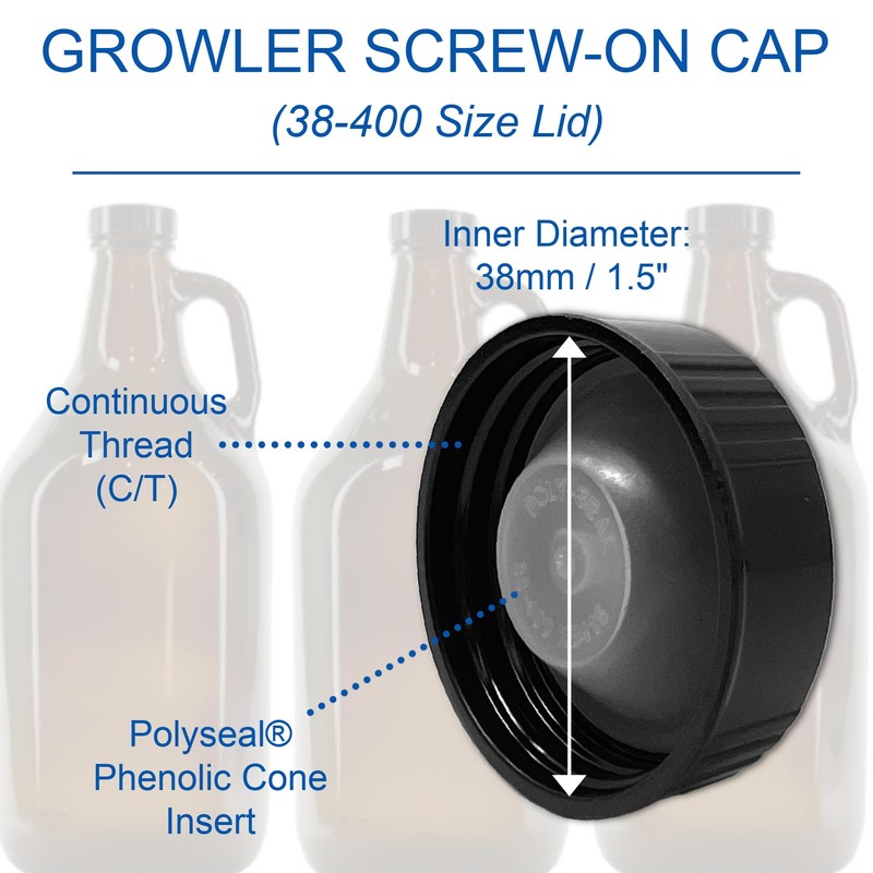- Growler Cap with Polyseal Phenolic Cone Insert; For Most 1-Gallon & 1/2-Gal Glass Growler Jugs; 1 Cap Included; Black