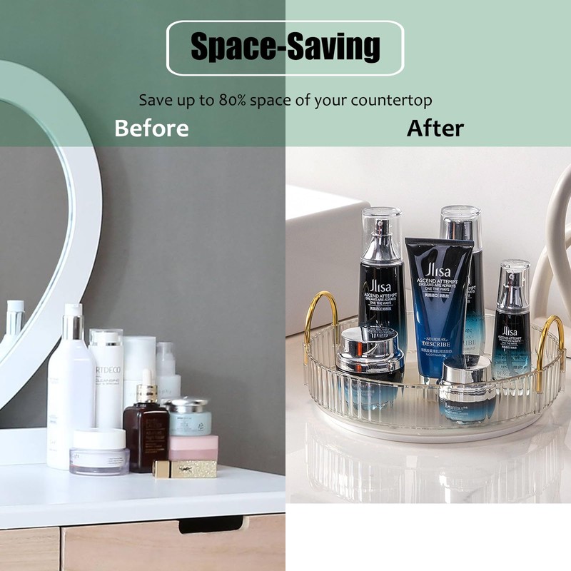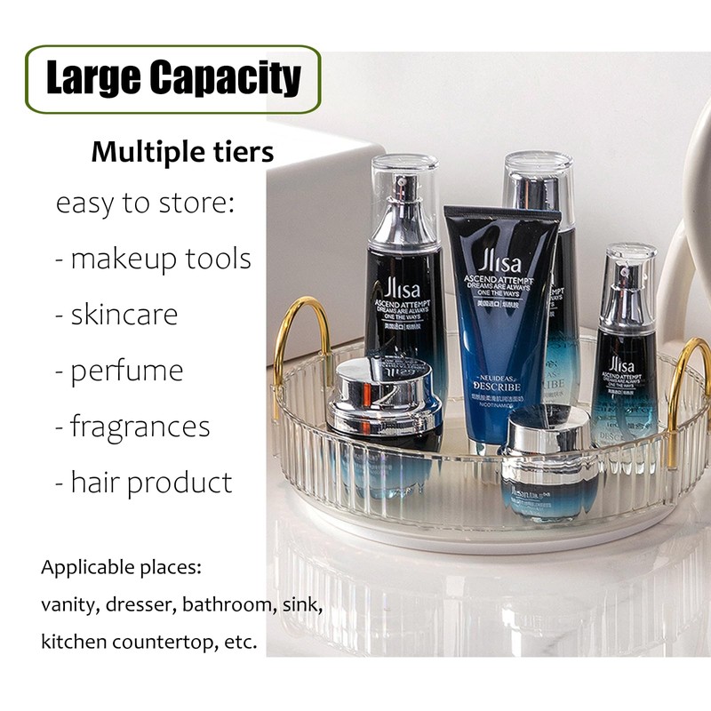 - 【Large Space】The round shape design makes it larger capacity, which can perfectly accommodate skin care products, perfume, eye shadow palette, nail polish, hair products, and so on