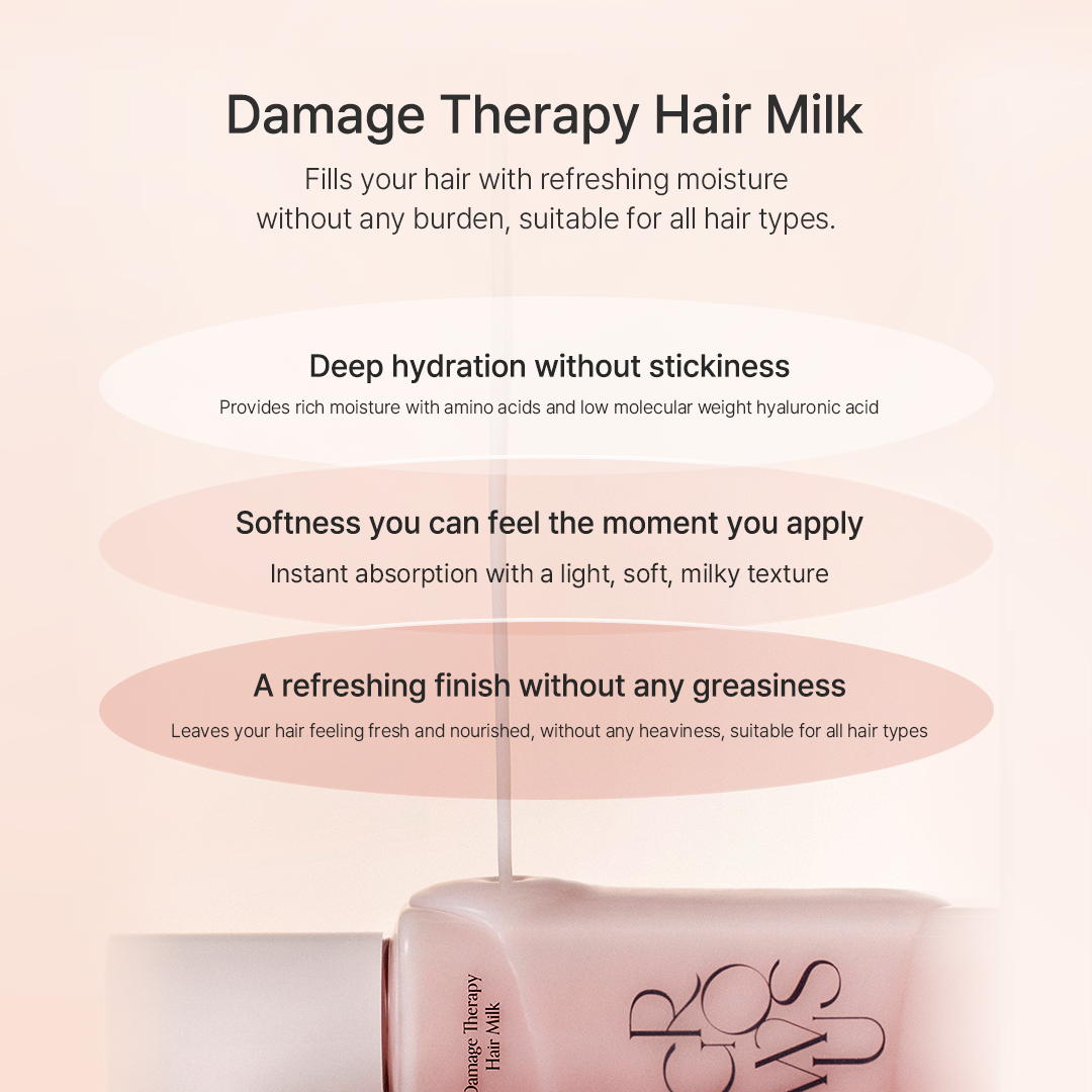 A moisturizing tangly milk texture that adheres and absorbs instantly when applied. The light and refreshing milky texture enhances hair texture without weighing it down even when reapplied multiple times. Elegant rose musk scent with a refreshing blackcurrant leaf scent added to Bulgarian rose scent.