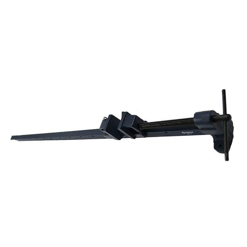 Groz 39101 T bar clamp 48" bar Length. Bar clamp is constructed from cold drawn steel. This robust clamp was designed for applications that require extra resilience under extreme pressure, these can be permanently fixed onto the workbench as well. The "T" Section bar is made from special cold drawn steel with a Section of 1" x 1-7/8" bar Length is 48" with 42" of capacity. The main screw has acme threads for smooth movement and increased resistance to wear. The steel bar, head and slide have an attractive powder coated finish, the main screw, handle and pins are Blackened for increased resistance to corrosion.