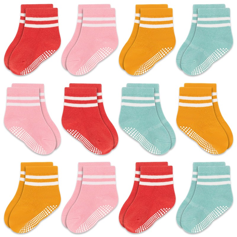 - Options for multiple ages: the set consists of 12 pairs of non-slip socks for children, which can be easily combined with different outfits. The stopper socks for children are available in different sizes, including 0-6 months and 6-12 months for babies, 12-36 months for toddlers and 4-7 years for children to meet the needs of your growing baby, so you can choose the size that fits your baby best