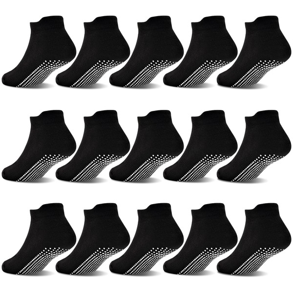 GRPSKCOS Non Slip Toddler Socks 15 Pairs Toddler Grip Socks Anti Skid Low Cut Socks for Boys Girls(#3 Black, 1-3T)