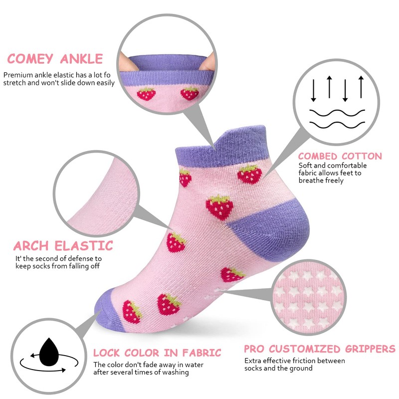 - Non-slip Grip Design: Our toddler ankle socks with grip feature a non-slip bottom that provides extra traction to help prevent slips and falls, ensuring your little one stays safe while they explore their surroundings
