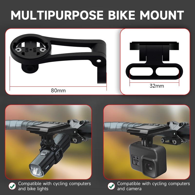 - WIDE COMPATIBILITY - This extended bike computer mount is compatible with Garmin Edge, Wahoo Elemnt Mini, Elemnt Blot, Elemnt Bolt V2, Elemnt Roam, Bryton Rider Stages Dash Hammerhead Karoo, Cateye(Please Note: need to be used with Garmin base), GoPro Sports action camera and bike light. You only need to buy a bike computer mount that you can use different types of bike computers. The maximum hole distance is 32mm(1.26in) , fits stem bolts center distance under, highly versatile.