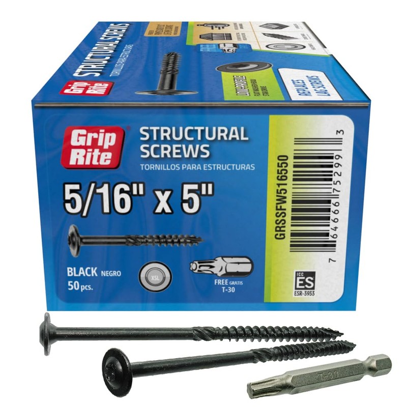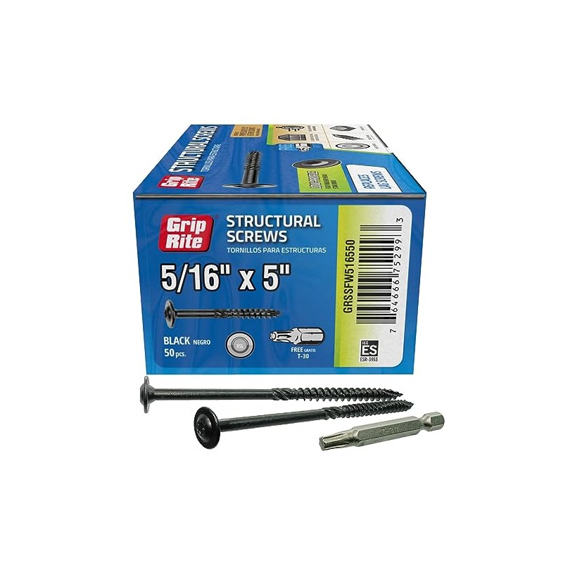 GRSSFW516550-GRIP-RITE 5/16 X 5 PRIMEGUARD Plus Coated T-30 Star Drive Washer Head COARSE Thread Type 17 Point Structural Screw 50 Count