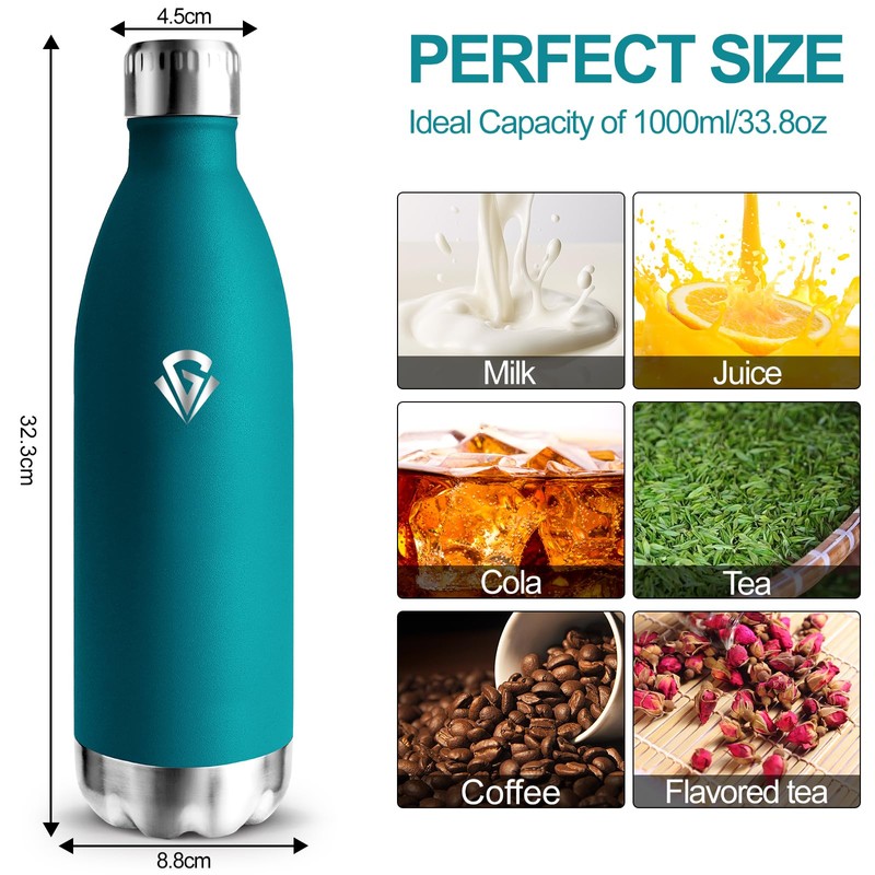- Easy to carry: this drinking bottle 1 litre is lightweight and combined with an ergonomic, non-slip design, it is stable and does not slip, whether it is held in the hand or carried in a backpack. Whether water, coffee, tea or carbonated drinks, it can be easily stored and becomes the ideal partner for your children's outdoor adventures and daily travel