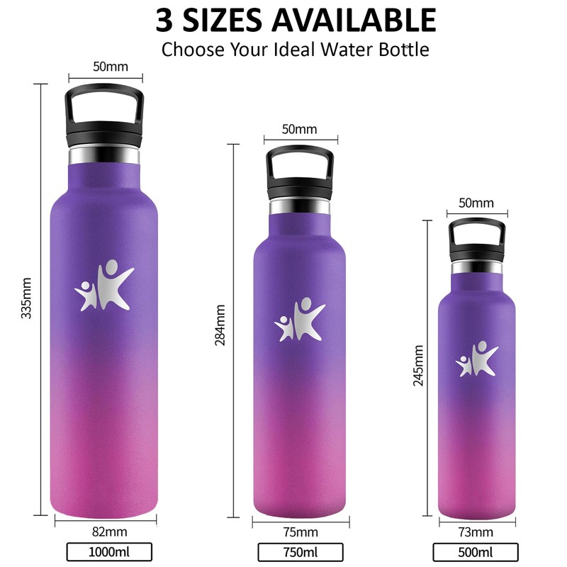 - Large diameter design: the stainless steel drinking bottle made of stainless steel has a large opening. This makes filling water, ice etc. very easy and the lid can be opened and closed quickly and easily. The large opening makes cleaning easier. The bottle can be cleaned directly with soap and water. Bottle contents are clearly visible so there are no blind spots for cleaning