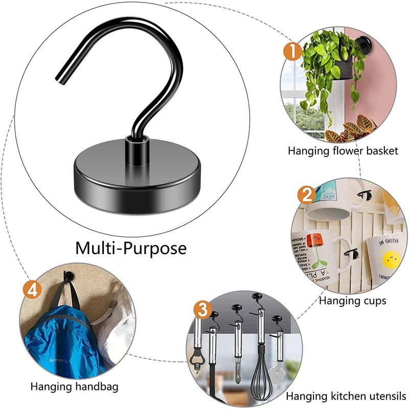- Multi-purpose: magnetic hooks can be used to organise rooms indoors and outdoors, kitchen, bathroom, cupboards, garage, shed or office anywhere iron or steel is present. No more holes in your walls or furniture.