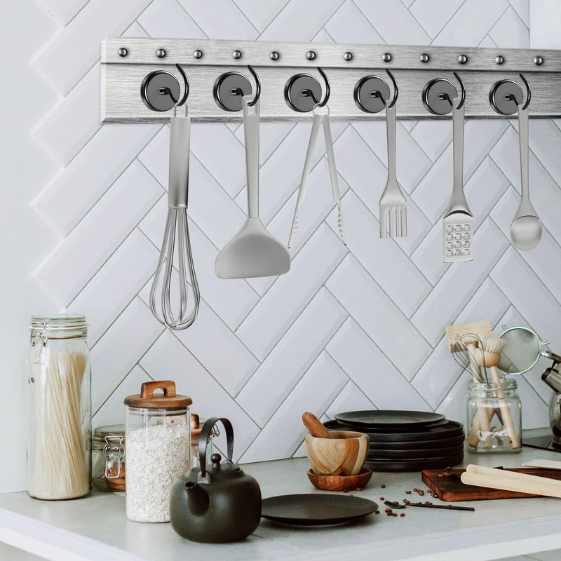 - Magnetic hooks: robust and reliable magnetic hooks for heavy duty are made of high-quality and exquisite magnets and steel. They are perfect for hanging items on the fridge.