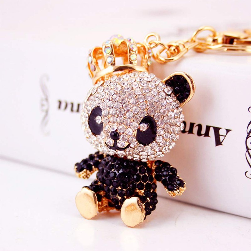 Grtdrm Cute Panda Shape Crystal Rhinestone Sparkling Keychain Bag Pendant Handbag Charm for Women Girls(Black)