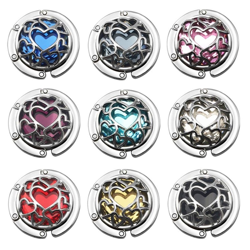 Grtdrm - Gancho plegable para colgar la bolsa, diseño de corazones, Celeste, Normal