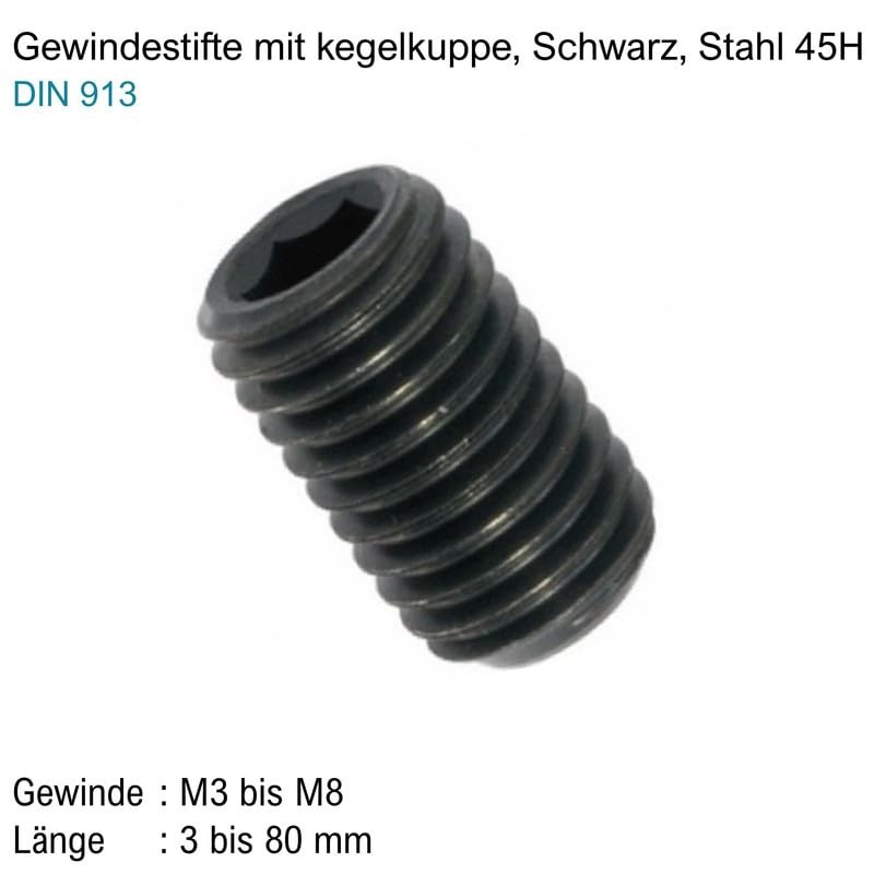 Grub Screws / Grub Screws M3 x 5 mm Black 45H - DIN 913 - with Cone Point and Hexagon Socket - Metric Thread (M3, Length: 5 mm, Quantity: 5 Pieces)