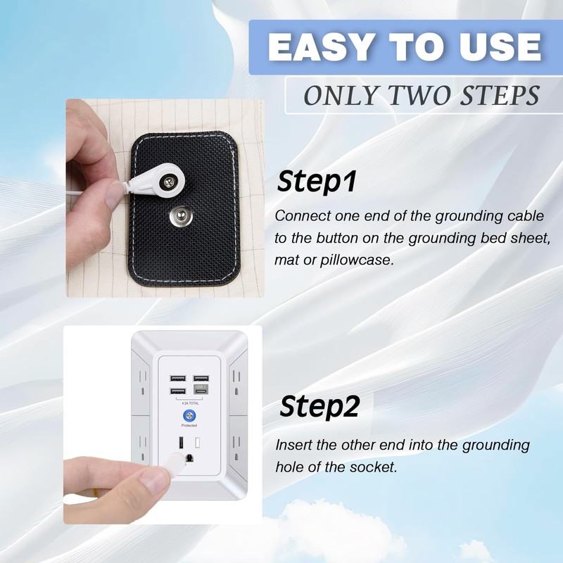 • Easy to use: Just place the grounding sheet on your mattress and enjoy its benefits and make sure connection of one side of grounding cord to the grounding sheet and another side into the ground port of the wall outlet (third hole).