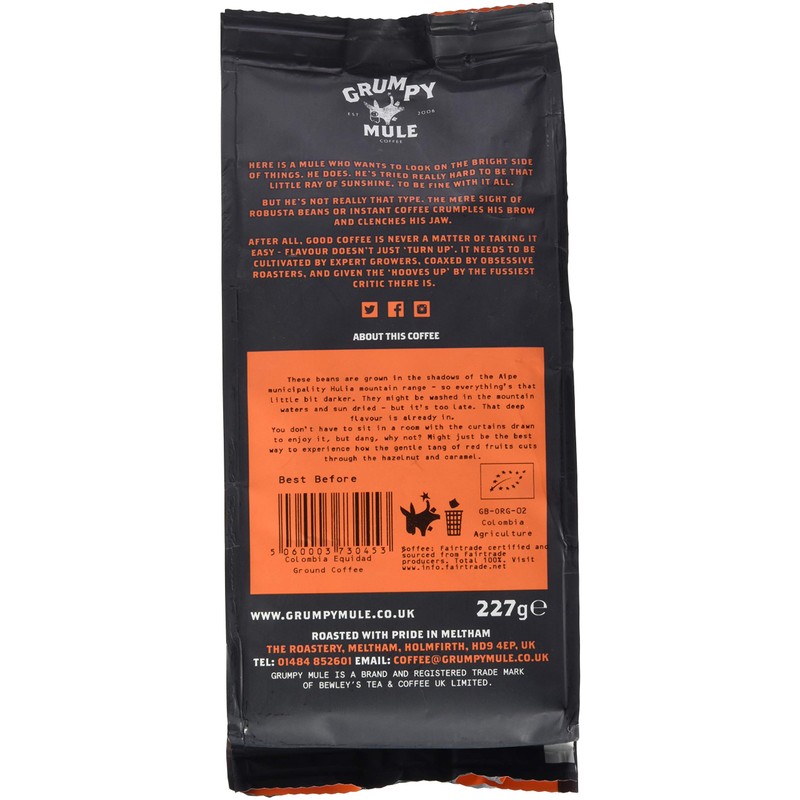 Grumpy Mule Organic Colombia Café Equidad Ground Coffee with tastes of Hazelnut, Caramel & a hint of Red Fruits 227 g
