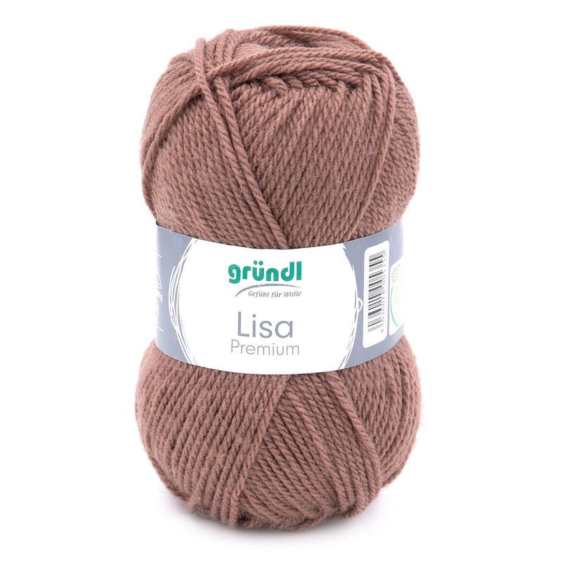 - Delivery contents and other features: Gründl Lisa Premium plain knitting and crochet yarn, 1 x 50 g/100% polyacrylic fibre. Swatch: 20 stitches x 27 rows = 10 x 10 cm. Material consumption: jumper (UK size 10) = 550 g.