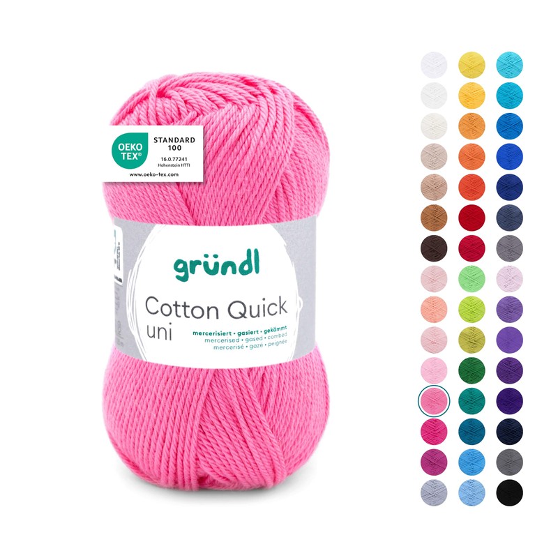- Box contents and other features: Gründl cotton quick plain knitting yarn/crochet yarn, 1 x 50 g, 100% cotton, tension sample: 22 m x 30 R = 10 x 10 cm, material consumption: jumper (size 38) = approx. 450 g