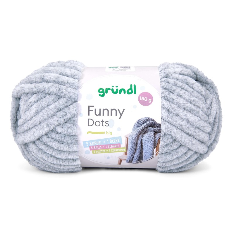 Gründl Wolle Funny Dots Strick- & Häkelgarn (weiches samtartiges Chenille-Garn aus 100% Polyester, 1 x 150 g / 60 m, Nadelstärke: 9-10), hellgrau-mausgrau