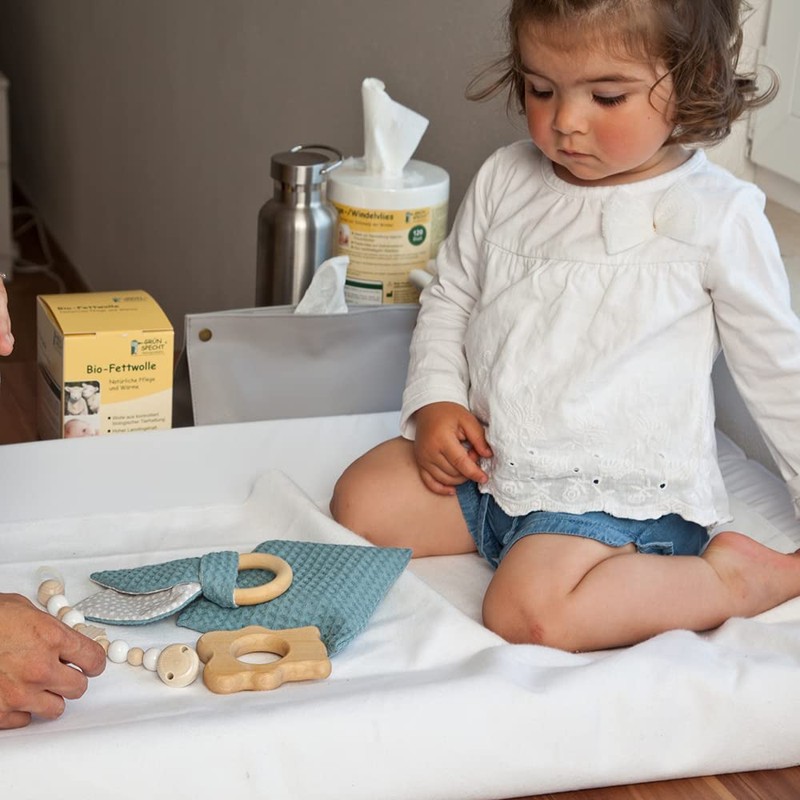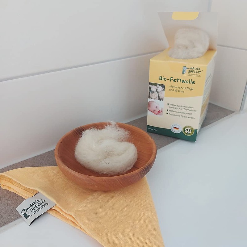 GRÜNSPECHT Bio-Fettwolle zur Pflege empfindlicher Babypopos und beanspruchter Brustwarzen, Schafwolle mit hohem Lanolingehalt, wiederverschließbare Spenderbox (638-00)
