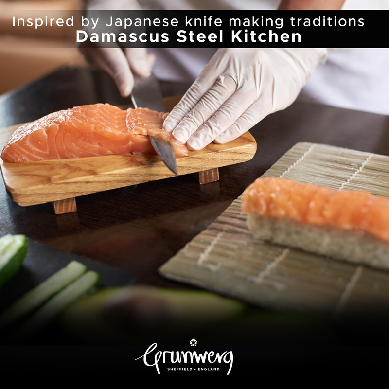 Grunwerg Katana Pearl Kitchen Knives - Premium Quality Japanese Damascus Steel Blades with Abalone Pearl Resin Handle, Professional, Sharp, Durable - 18 cm Santoku Knife