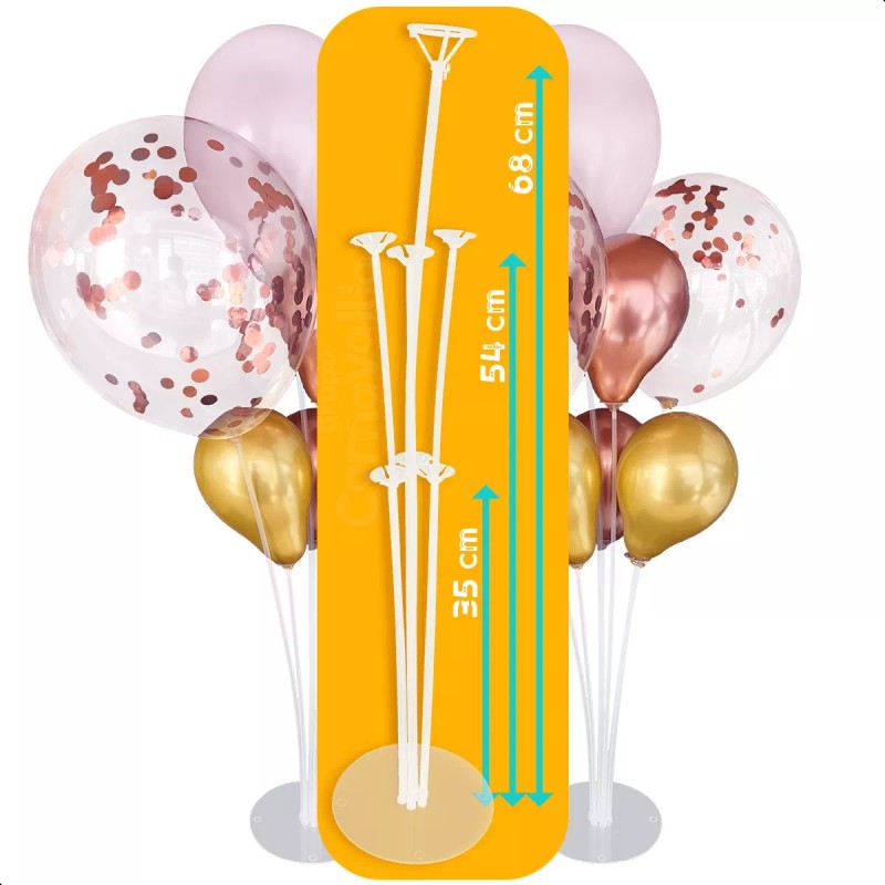 -Coloque la barilla en la parte inferior de la base, Infle sus globos y anude en la base para decorar su evento.