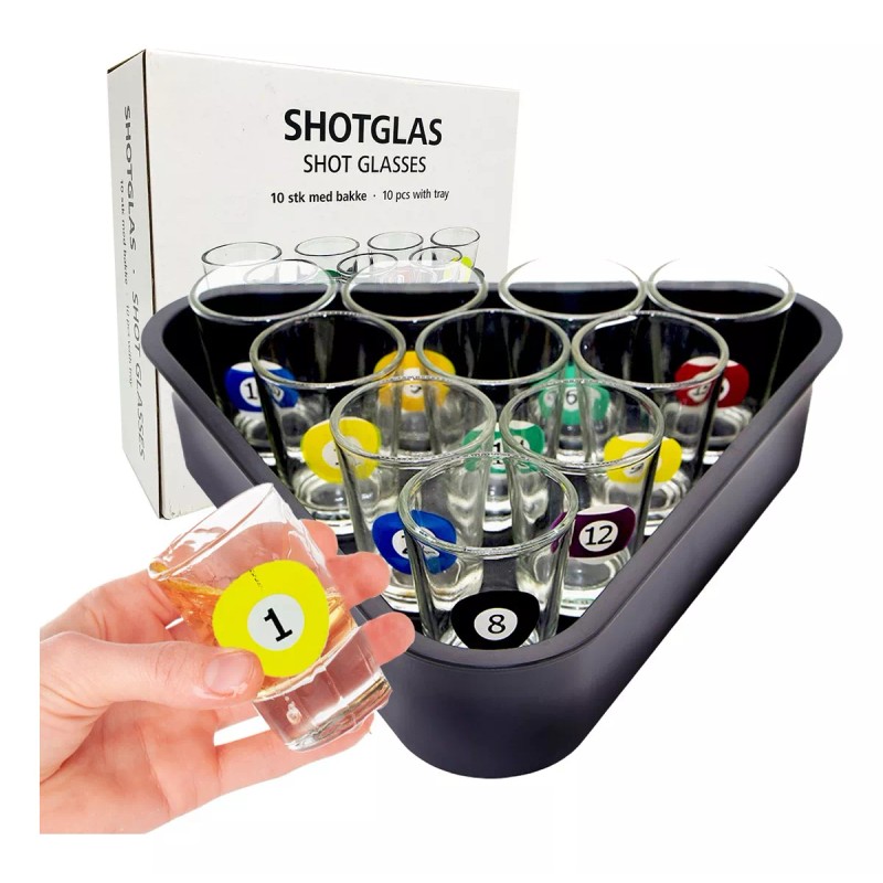 Grupo Carnavallia Billar Shots Bolas Juego 10 Caballitos Bandeja Fiesta Drinks
