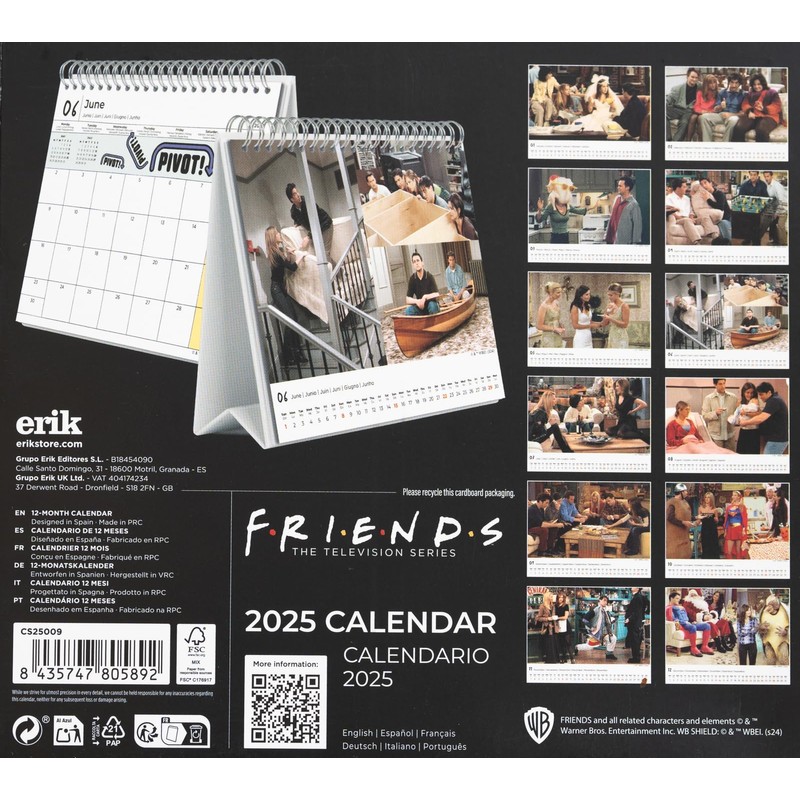 Grupo Erik Calendar 2025 Desk Calendar Friends Calendar 2025 Family Planner Desk Calendar 2025 to Stand Up 20 x 17 cm Annual Calendar 2025