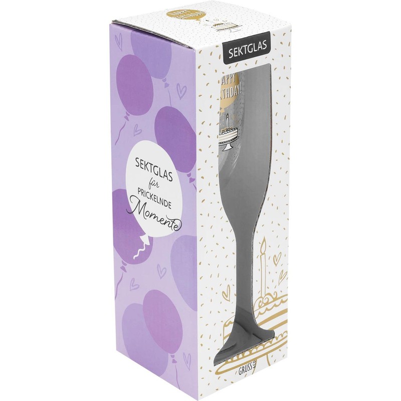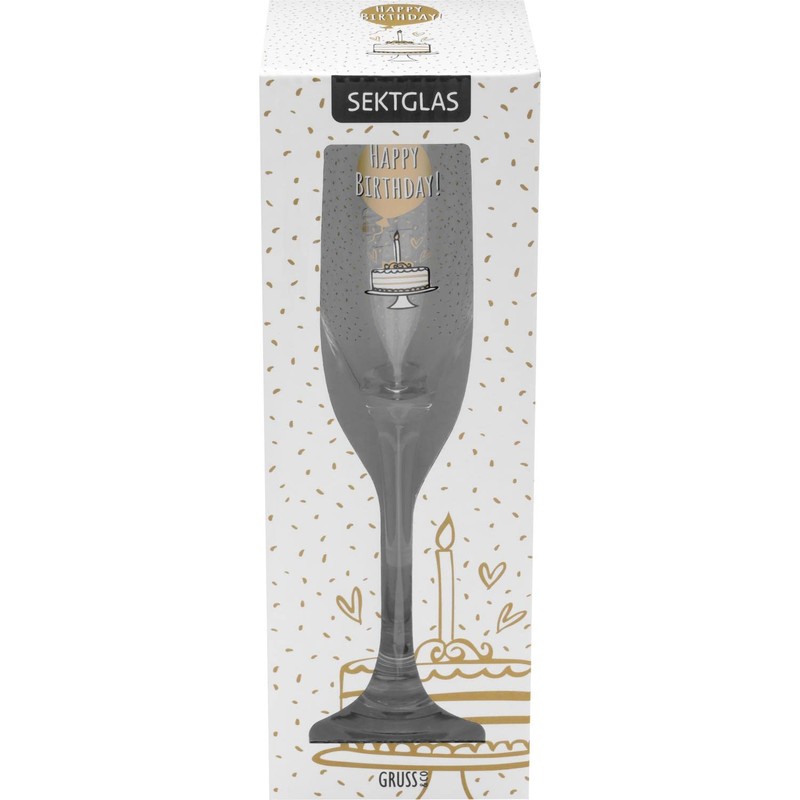 GRUSS & CO Champagne glass with "Happy Birthday" motif, printed Secco glass, height 22.3 cm, 20 cl, gift for birthday, Valentine's Day, 47828