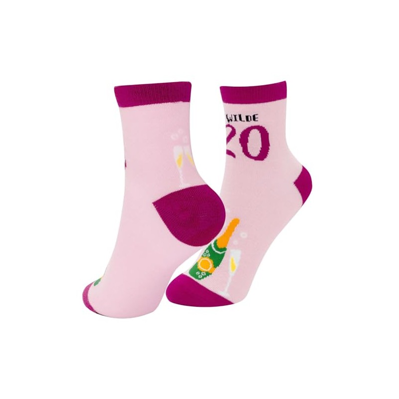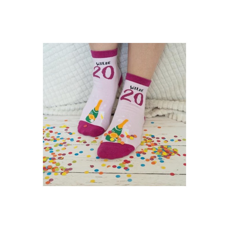 • Magic socks with motif: magic socks with motif print "20th birthday", coloured women's socks in size 36-40, material: 80% cotton, 15% nylon, 5% elastane, socks are delivered as pressed packets.