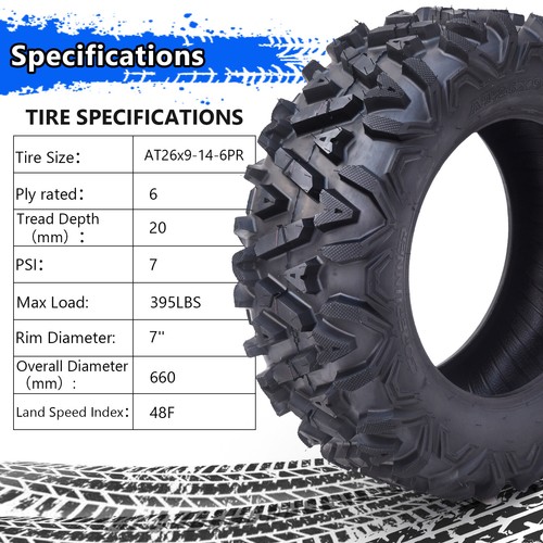 GRVEE Set of 2 26x9-14-6PR TL All Terrain ATV UTV Off-Road Tires ATV Tires 26x9x14 NEW
