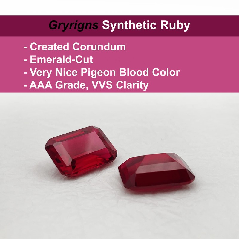 Gryrigns Emerald-Cut Loose Synthetic Ruby Stone Red Corundum Gemstone Cut Fac...