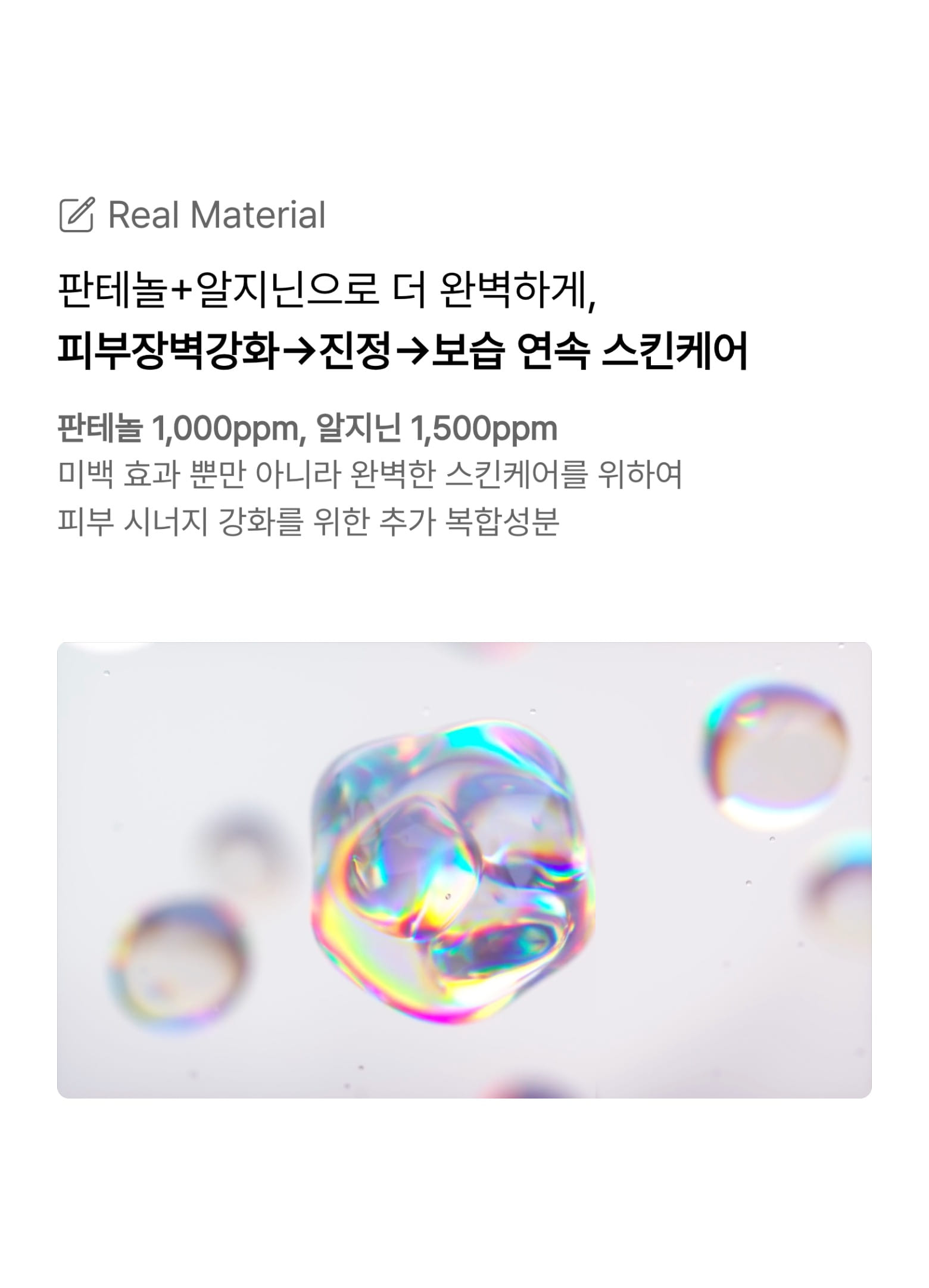 | 화장품법에 따라 기재, 표시하여야 하는 모든 성분 | 정제수, 글리세린, 부틸렌글라이콜, 아이소펜틸다이올, 나이아신아마이드, 글리세레스-26, 시어버터, 1,2-헥산다이올, 펜타에리스리틸테트라아이소스테아레이트, 폴리글리세릴-10올리에이트, 하이드록시아세토페논, 하이드로제네이티드레시틴, 아크릴레이트/C10-30알킬아크릴레이트크로스폴리머, 알지닌, 알란토인, 판테놀, 아데노신, 에틸헥실글리세린, 소듐파이테이트, 향료, 3-O-에틸아스코빅애씨드, 효모/쌀발효여과물, 알파-알부틴, 갈락토미세스세포외소포, 콜라겐수, 콜라겐추출물, 하이드롤라이즈드콜라겐추출물, 콜라겐, 하이드롤라이즈드콜라겐, 아텔로콜라겐, 비사보롤, 수용성콜라겐, 스페인감초뿌리추출물, 스페인감초뿌리수 |