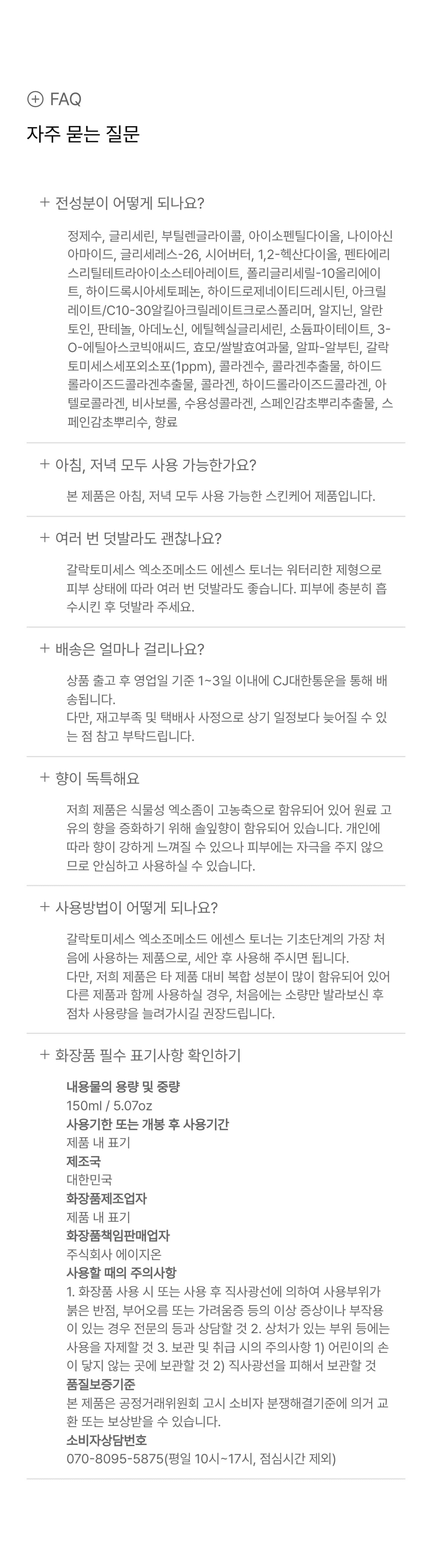 | 내용물의 용량 또는 중량 | ■엑소프록실 갈락토미세스 엑소조메소드 에센스토너 150ml |