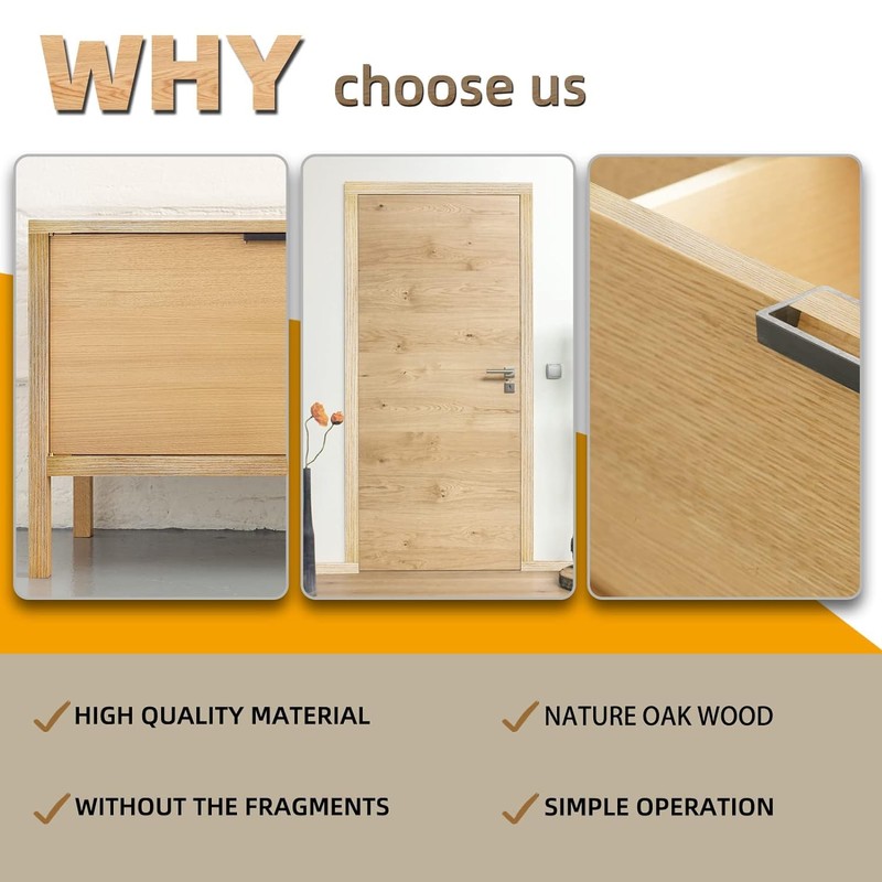 What is Oak edge banding? Oak edge banding is most popular when using Pressure Laminated and Melamine Cabinets. With modern cabinetry on the rise, it is not uncommon to see cabinets with glossy or colorful finishes. Oak Edge banding is made from Natural Oak Wood, it is known to be both flexible and durable. Pigments and other materials are added to create seemingly endless options of edge banding colors, textures and woodgrains. Oak edge banding, as a commonly used auxiliary material for furniture, can prevent moisture intrusion, effectively prevent the release of trace formaldehyde in furniture, and can also strengthen wooden boards. Package included: 1 Roll Oak edge banding(5/8 inch x 50ft)