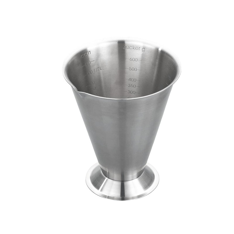 - Messbecher 750 ml. aus Edelstahl matt, mit Fuß.