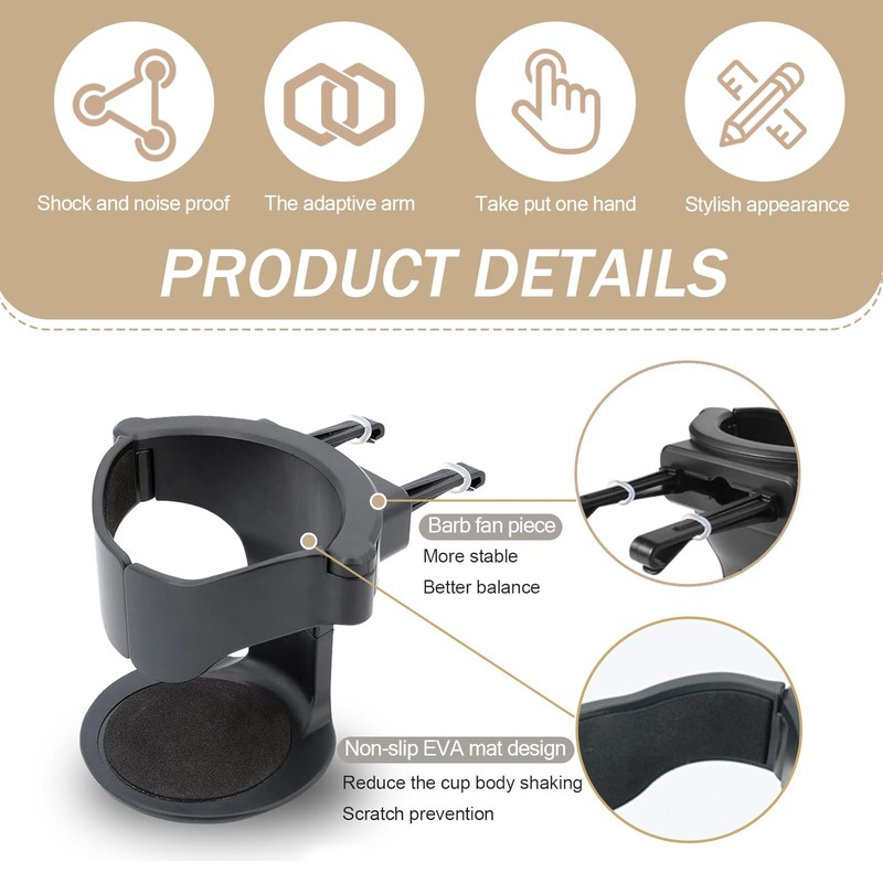 - Stability: The cup holder can easily bear a weight of 1KG, which can bear the weight of cups in daily life. It can provide more protection for water bottles on bumpy roads, keep the water cups balanced and stable, and save space. The support rod of the cup holder can be adjusted by stretching.