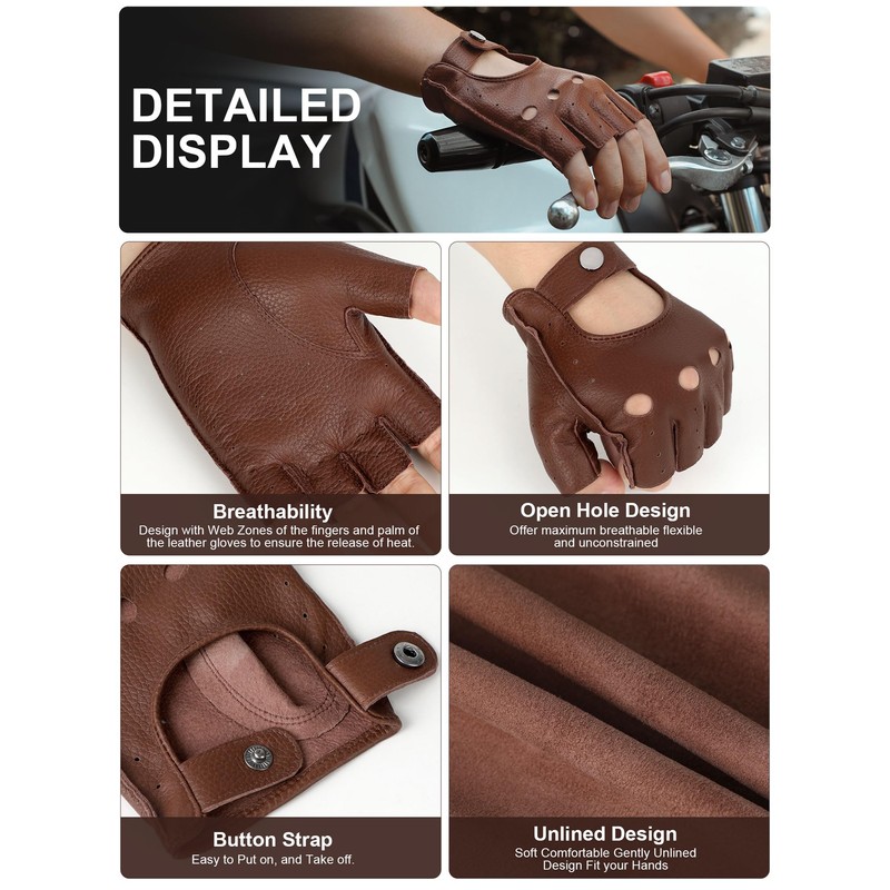 - Occasion: The fingerless leather gloves are perfect for any occasion, such as driving, motorcycling, cycling, motorcycling, sports or other outdoor activities.