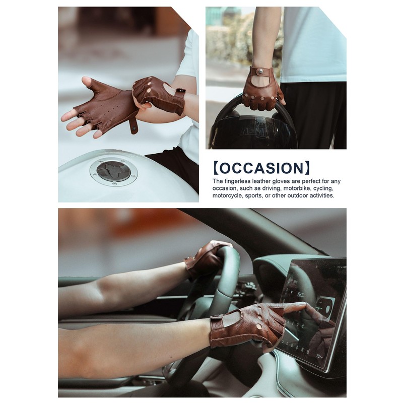 - Occasion: The fingerless leather gloves are perfect for any occasion, such as driving, motorcycling, cycling, motorcycling, sports or other outdoor activities.