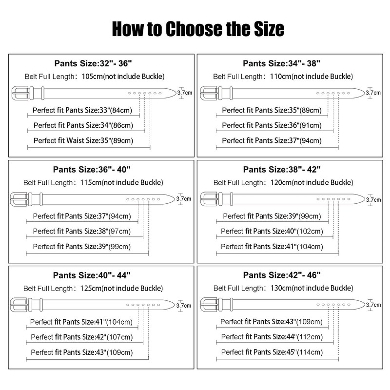 - 【SIZE】Width 3.7cm/1.45inch. There are 7 holes on the belt to make belt fits more waistline size. For best fit,Please refer to our size chart among the main pictures.