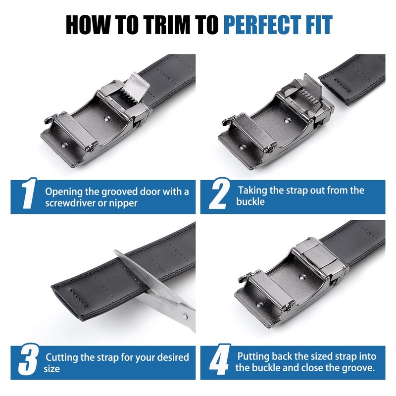 - 【Trim-to-Fit Design】Customize your mens leather belt to your exact size with the easy trim-to-fit design. Simply cut the strap to your desired length—no tools or additional holes required. This hassle-free solution ensures a perfect fit for every body type, making it an ideal choice for anyone looking for mens belts for jeans or a versatile black belt men can rely on daily.