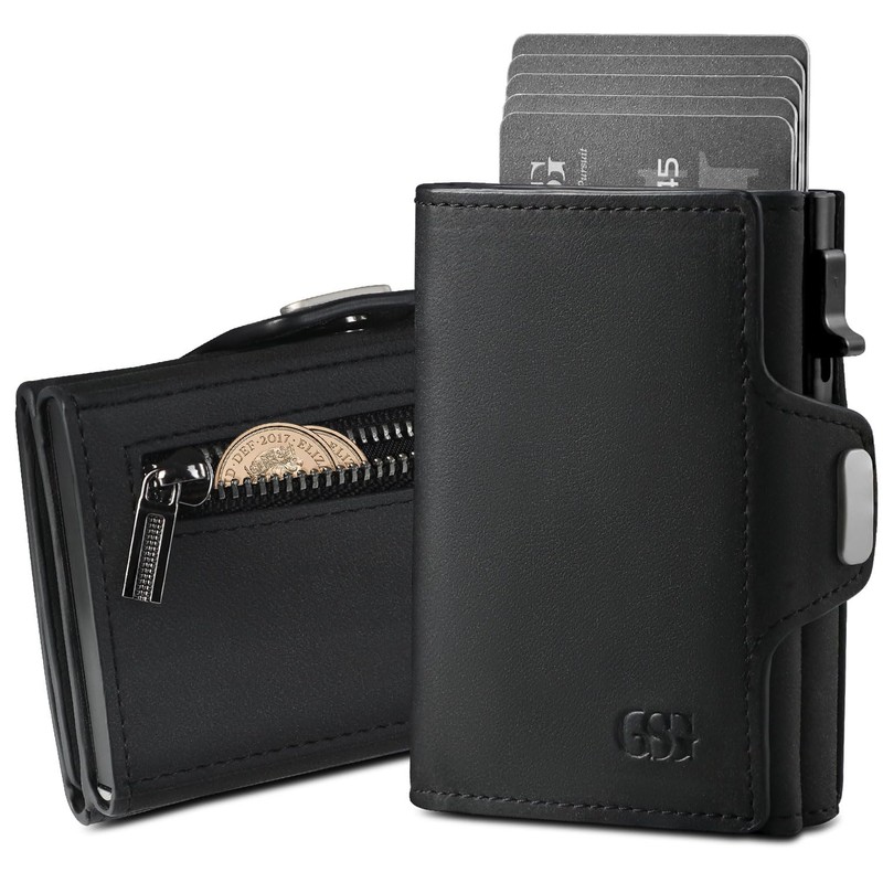 GSG SINCE 1998 Men's Wallet RFID Blocking Leather Wallet for Men Slim Wallet with Coin Pocket Pop-Up Card Access Microfiber Black