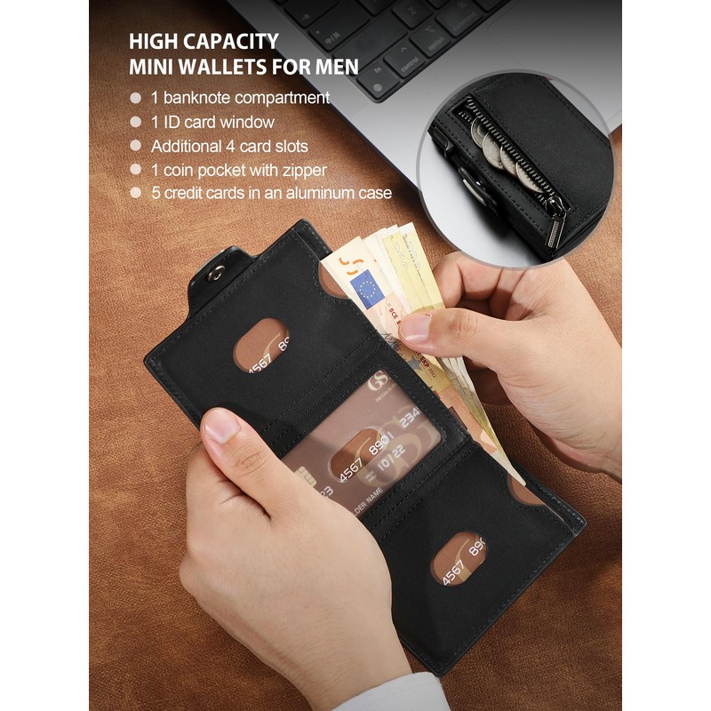 - Spacious Design: Designed for practicality, this card wallet for men features space for up to 5 cards, 4 card slots, 1 ID window, a zippered coin pocket, and a separate bill compartment. Its compact size makes it an ideal travel wallet for everyday use.
