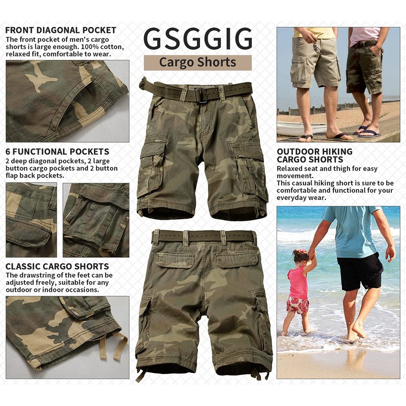 - Multiple Pocket. Each mens shorts casual own 6 pockets, 4 of which have buttons. The pockets of these mens khaki shorts are deep enough to prevent phones, keys, and other small objects from falling during exercise or daily wear.shorts for men casual, camo cargo shorts for men.