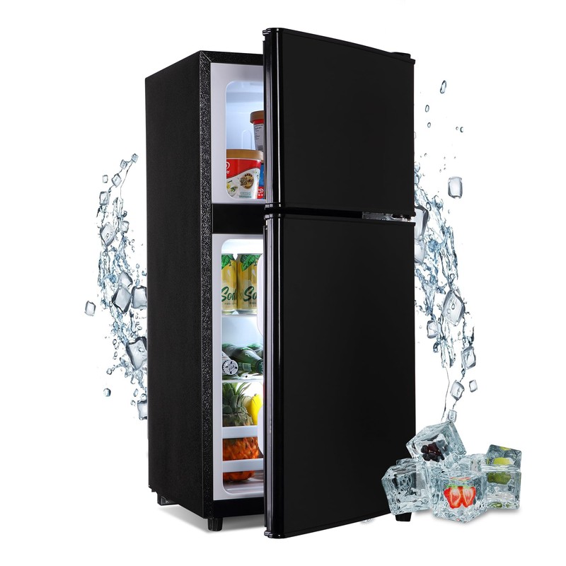 Gshop FLS-90-BLACK Compact Refrigerator 3.6 Cu. Ft. for Apartment, Dorm Fridge, Adjustable Thermostat, Glass Shelves, Separate Freezer for Kichen, RV, Office, Black