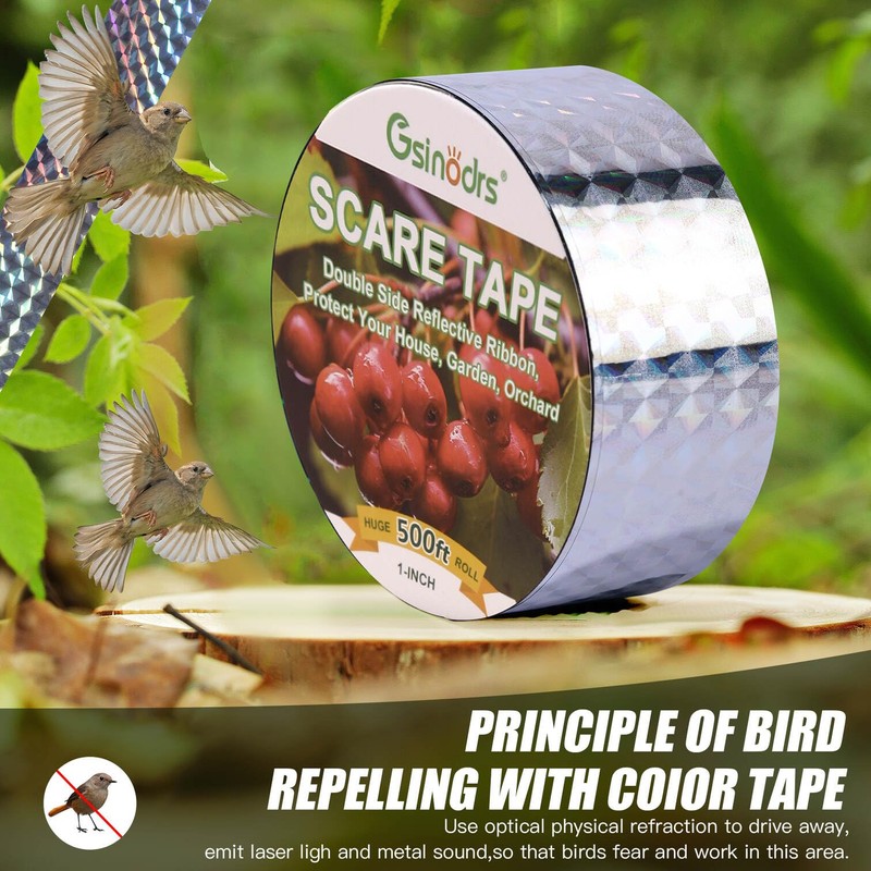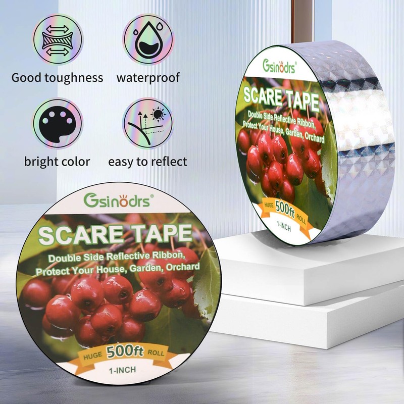 Ideal for gardens, orchards, farms, outdoor areas, and around houses, this Scare Tape Bird Repellent is suitable for everyone. Protect your precious outdoor spaces with the Gsinodrs Bird Tape Repellent and enjoy a peaceful, bird and animal-free environment. The Bird Reflective Tape is a reliable choice for keeping those pesky birds at bay. And with its scare tape functionality, it provides an efficient solution. Say goodbye to bird nuisances with our amazing Bird Scare Tape Reflective.