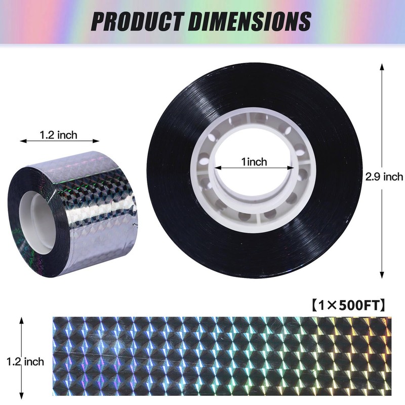 - 【LOW MAINTENANCE】500ft x 1in x 2 extra long dual-sided reflective tape to meet your daily needs. Affix by hanging or anchoring in any area due for safeguarding and let the wind amplify your bird tape outdoor. Once installed our bird tape Simply enjoy the peace and quiet it provides without worrying about regular maintenance or replacement.