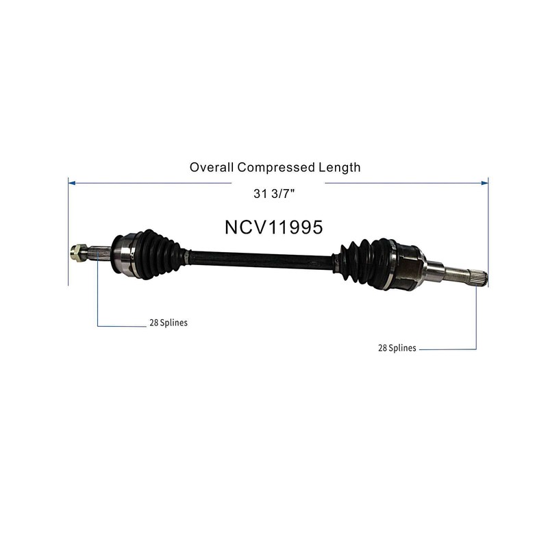 - Left or Right Rear (Driver or Passenger Side); 31-7/16 inch compressed length; 28 spline outer joint; 28 spline inner joint