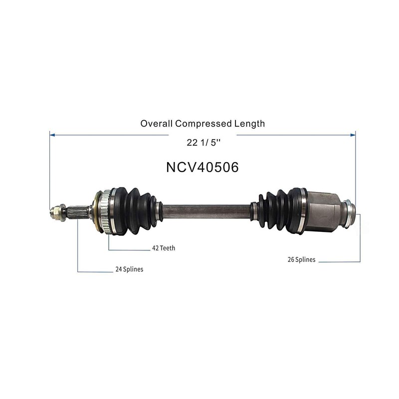 • Right Front (Passenger Side); 22-1/4 inch compressed length; 24 spline outer joint; 26 spline inner joint; 42 tooth ABS ring