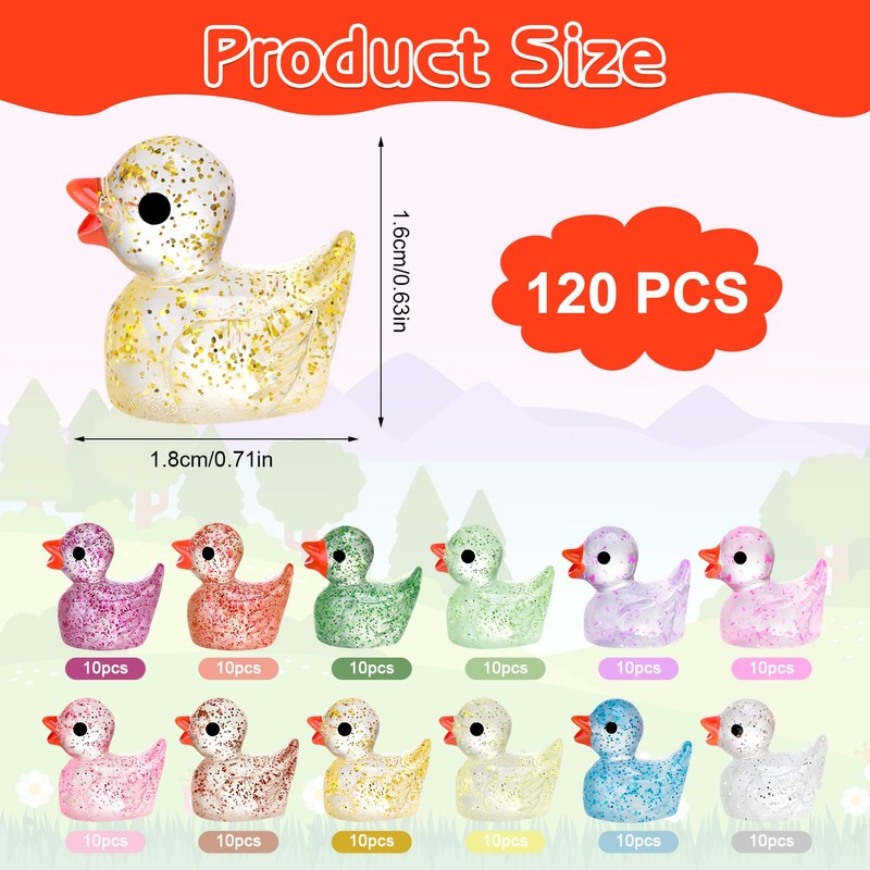 GSrenyu 120 Pcs Mini Resin Ducks Glitter Mini Ducks Tiny Ducks Resin Ducks Tw...